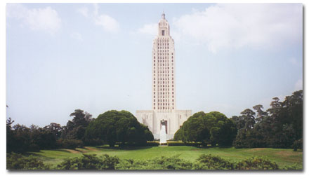 We crossed the border into Louisiana and switched drivers. We headed out of town through LSU's campus and passed by their huge football stadium. We were headed for a ferryboat to take us across the Mississippi to the West side. The small back road mentioned in our guidebook ran right alongside the dike of the Mississippi River. Unfortunately, we soon experienced our